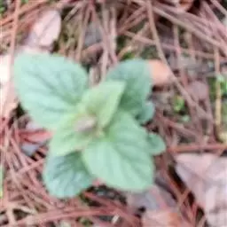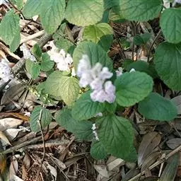 叶草质,卵圆形或三角状卵圆形,长1.4-4.7厘米,宽1.2-3.5厘米,先端锐尖至钝,有时圆形,基部截形,截状楔形至近圆形,边缘具浅而钝的2-10对牙齿,两面疏被伏贴的小柔毛,下面以沿各脉上较密,侧脉3-4对,斜上升,与中脉在上面不明显下面突出;叶柄长(0.3)0.5-2厘米,疏被上曲的小柔毛。