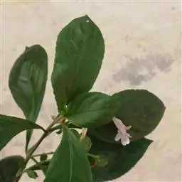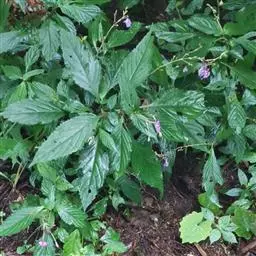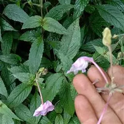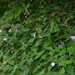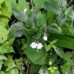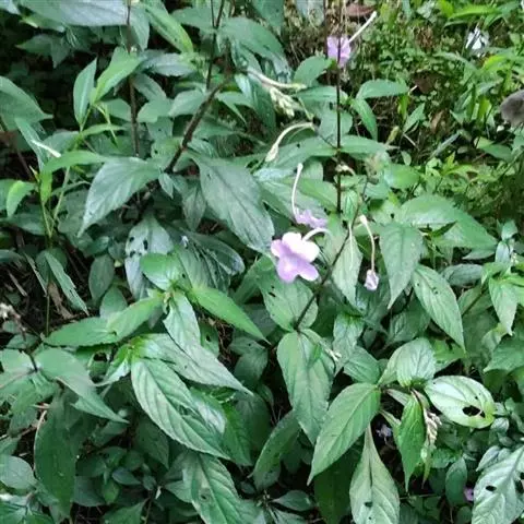 多年生草本,外倾,叶具叶柄,椭圆形,基部急尖,钝,圆或近心形,几全缘,长3-12厘米,宽1-4(-6)厘米,两面稀疏被短毛,上面钟乳体点状,总状花序顶生,花序轴4棱,棱上被毛,较明显,花偏向一侧。苞片对生,三角形,长5毫米,疏被短毛;小苞片2,似苞片,着生于花梗基部,长2毫米;花梗约长3毫米,无毛;花萼长7毫米,5深裂,仅基部结合,裂片披针形,线形,长5-6毫米,被腺毛。