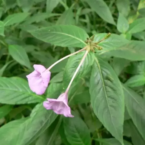 花冠短,约长2.5厘米,略两唇形,外面被疏柔毛;花冠管基部圆柱状,长约12毫米,上唇2裂,裂片三角状卵形,先端略尖,长约5毫米,下唇3裂,裂片长卵形,椭圆形,中裂片长约9毫米,侧裂片7毫米,中裂片两侧自喉部向下有2条褶襞直至花冠筒下部,褶襞密被白色柔毛,并有紫红色斑点;雄蕊4,花丝无毛,每边一长一短,在基部两两结合成对,花药紫色,背着,长圆形,2室不等高,基部具短尖头;花柱约长12毫米,基部被长柔毛,子房约长3毫米,密被长柔毛,具杯状花盘,花盘多少钝圆,5浅裂。