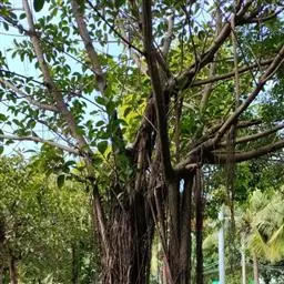 垂叶榕是桑科榕属大乔木植物。树皮灰色,枝下垂;叶薄革质、卵形或卵状椭圆形、拖叶披针形;花宽卵形、花丝短、窄钥形;花柱侧生、花被片短钥形;果球形或扁球形、光滑、熟时红或黄色。花期8-11月。垂叶榕因其叶片像提琴,故此得名垂叶榕、花叶榕等。垂叶榕原产于中国南方地区、泰国、印度及马来西亚一带。喜温暖湿润阳光充足的环境,耐热、耐旱;忌低温干燥环境,耐寒性较强,对土质要求不高,但需肥沃和排水良好。垂叶榕可采用播种,扦插、压条及嫁接的方法进行繁殖。垂叶榕的气根、树皮、叶芽、果实具有清热解毒、祛风、凉血的作用,有很好的的药用价值。垂叶榕是十分有效的“空气净化器”,还可以吸收甲醛、甲苯等有害气体,净化浑浊空气。