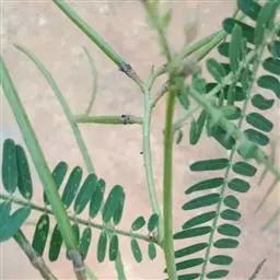 小乔木,高4-10米,胸径达25厘米。枝斜展,圆柱形,叶痕及托叶痕明显。羽状复叶,长20-40厘米;叶轴圆柱,幼时密被毛,后变无毛;托叶斜卵状披针形。长达8毫米,早落;小叶10-30对,长圆形至长椭圆形,长2-5厘米,宽8-16毫米,叶轴中部小叶较两端者大,先端圆钝至微凹,有小突尖,基部圆形至阔楔形,两面密布紫褐色腺点或无,幼时两面被绢状伏毛,后变无毛,侧脉7-8对,不明显;小叶柄长1-2毫米;小托叶针状。