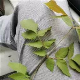 叶为奇数不相等的羽状复叶,小叶常大小相间,长10-20厘米;叶柄长约2.5-5厘米;小叶,6-8对,卵形至长圆形,最大者长可达6厘米,宽达3.2厘米,最小者长宽均不及1厘米,先端尖,基部稍不相等,全缘,两面均被白色疏柔毛,侧脉每边6-7条,先端略弯,小叶柄长约1-8,毫米。