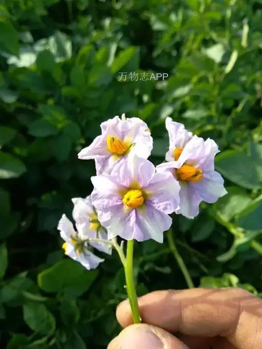 阳芋(学名:Solanum tuberosum L.)是茄科,茄属草本植物,高可达80厘米,无毛或被疏柔毛。地下茎块状,扁圆形或长圆形,叶为奇数不相等的羽状复叶,小叶常大小相间,卵形至长圆形,叶片最大可长6厘米,伞房花序顶生,花白色或蓝紫色;萼钟形,裂片披针形,花冠辐状,子房卵圆形。浆果圆球状,花期夏季。
