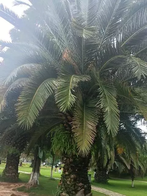 加那利海枣是棕榈科刺葵属植物,单干直立,自然高度可达18米,干径50-90厘米,幼时被以枯叶,…