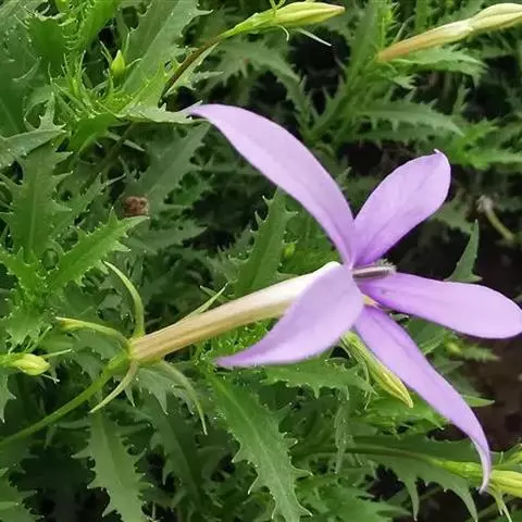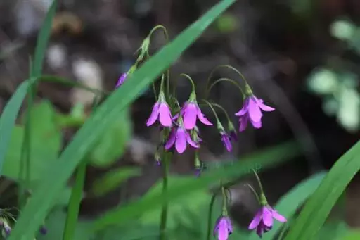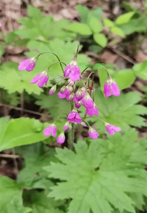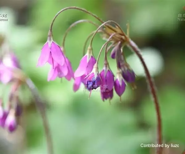 叶柄被纤毛,两侧具膜质翅,长?一13厘米。花葶1—3条,长10— 30厘米,被稀疏纤毛;伞形花序1轮,苞片披针形,被稀疏柔毛;花梗柔弱,开展或下垂,长2—5厘米,参差不齐,花冠漏斗状钟形,紫红色,裂片矩圆形,顶端钝尖,边缘全缘,或有不整齐缺刻,雄蕊生花冠基部。