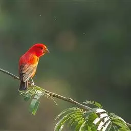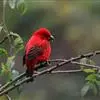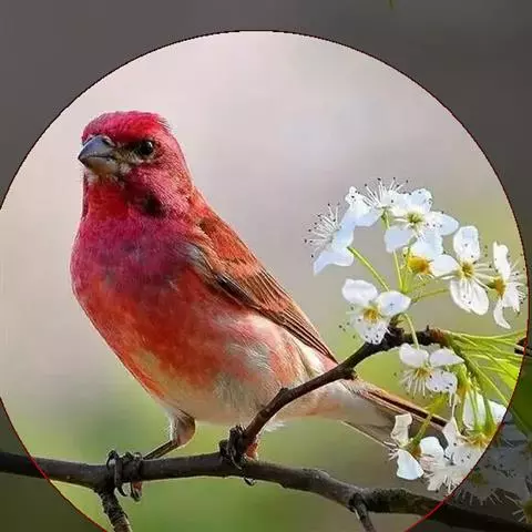 酒红朱雀小型鸟类,体长13~15厘米。雄鸟通体深红色,头部深朱红或棕红色,下背和腰玫瑰红色,…