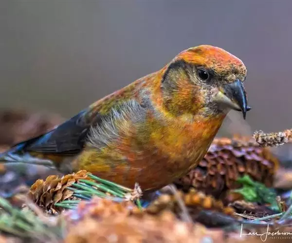 交嘴雀是寒温带针叶林鸟类,巢穴筑在松枝茂密的地方,巢用细枝,小草筑成杯状,里面铺垫着柔软的羽毛。冬季游荡且部分鸟结群迁徙。飞行迅速而带起伏。