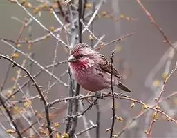 红眉朱雀:体长15厘米,是一种中等体型的朱雀。上体褐色斑驳,眉纹、脸颊、胸及腰淡紫粉,臀近白。…