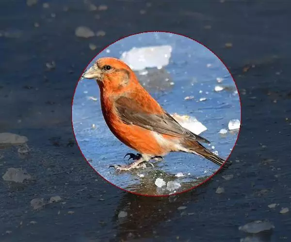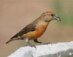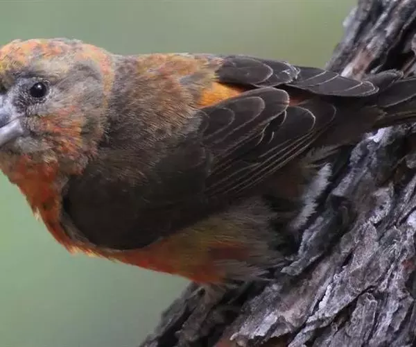 交嘴雀的翅膀和尾巴是黑褐色的,身体其他部分是美丽的红色,交嘴雀的嘴长相奇特,上下嘴不能像其他鸟类那样合在一起,而是互相交叉着,而且嘴尖分别向上下伸出来很长。