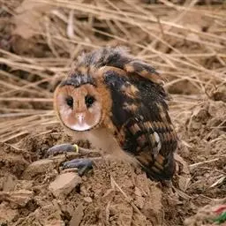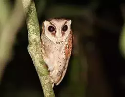 栗鸮(学名:Phodilus badius),俗名猴面鹰。中等体型(27厘米)的红褐色鸮。其心形脸庞及时而竖起的“耳朵”与仓鸮甚似。上体红褐而具黑白点斑,下体皮黄偏粉具黑点,脸近粉色。虹膜-深色;嘴-褐色;脚-污褐色。