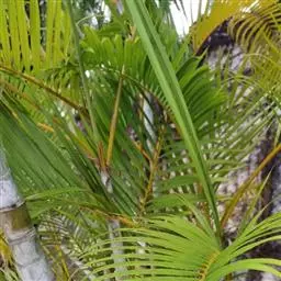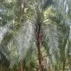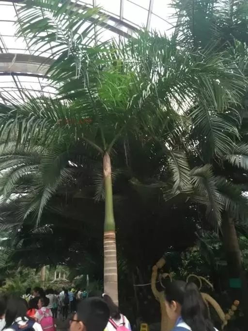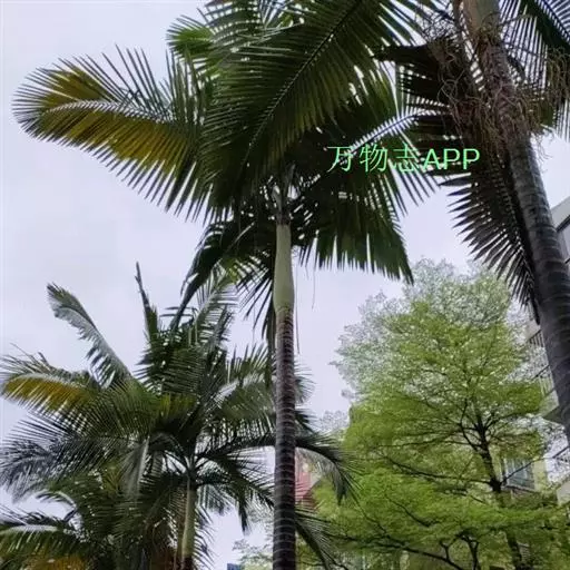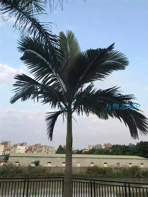 假槟榔 乔木状,高达10-25米,茎粗约15厘米,圆柱状,基部略膨大。叶羽状全裂,生于茎顶,长2-3米,羽片呈2列排列,线状披针形,长达45厘米,宽1.2-2.5厘米,先端渐尖,全缘或有缺刻,叶面绿色,叶背面被灰白色鳞秕状物,中脉明显;叶轴和叶柄厚而宽,无毛或稍被鳞秕;叶鞘绿色,膨大而包茎,形成明显的冠茎。