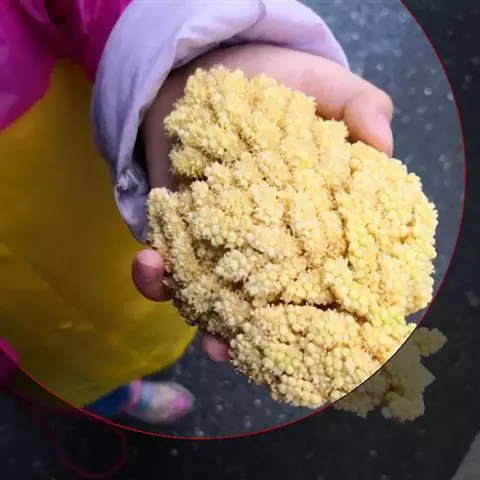 花序生于叶鞘下,呈圆锥花序式,下垂,长30-40厘米,多分枝,花序轴略具棱和弯曲,具2个鞘状佛焰苞,长45厘米;花雌雄同株,白色;雄花萼片3,三角状圆形,长约3毫米;花瓣3,斜卵状长圆形,长约6毫米,雄蕊通常9-10;雌花萼片和花瓣各3片,圆形,长3-4毫米。
