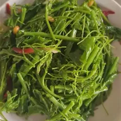 油辣冬笋尖,是一道补气调理、 健脾开胃的湘西山区菜,不可久煮多偏,旺火热油,瞬间即成,质地脆嫩,口味鲜美。