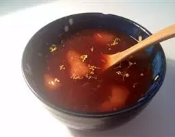 2. 炒锅内放人花生油,烧至七成热,下冬笋、花椒煸炒30秒钟,再下酱油、精盐炒几下,注入100克杂骨汤,加味精,焖2 分钟,收于汤汁,盛入盘中,淋上辣椒油,拌匀待凉,装盘即成。