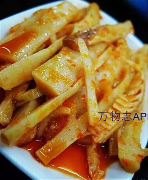湖南是冬笋的主要产区之一,湘西山区人民尤喜食笋。此莱是以冬笋尖为主料制成,白中带红,脆嫩鲜辣,富有浓郁的地方特色。