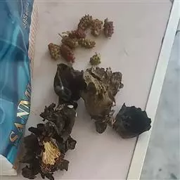 ②炒苍耳子:取苍耳子,置预热炒制容器内,用中火加热,炒至表面深黄色刺焦,内部浅黄色时取出,晾凉,碾去刺,筛净。用时捣碎。