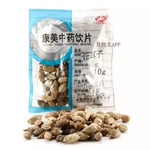 菊科植物苍耳的干燥成熟带总苞的果实。