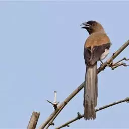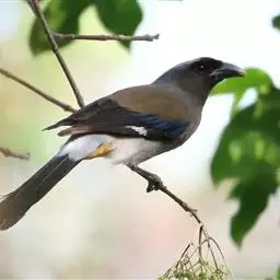 灰树鹊中型鸟类,体长多为31~39厘米。头顶至后枕灰色,其余头部以及颏与喉黑色。背、肩棕褐或灰褐色,…