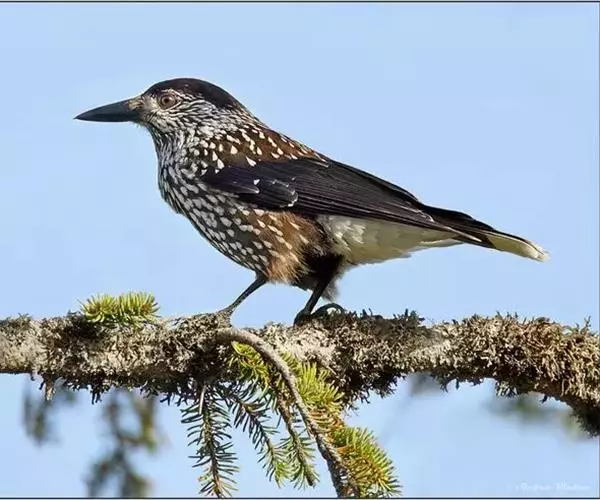 星鸦(学名:Nucifraga caryocatactes)是鸦科星鸦属的鸟类,共有10 个亚种。体长29-36厘米,翼展55厘米,体重50-200克,寿命8年。体羽大都咖啡褐色,具白色斑;飞翔时黑翅,白色的尾下覆羽和尾羽白端很醒目。