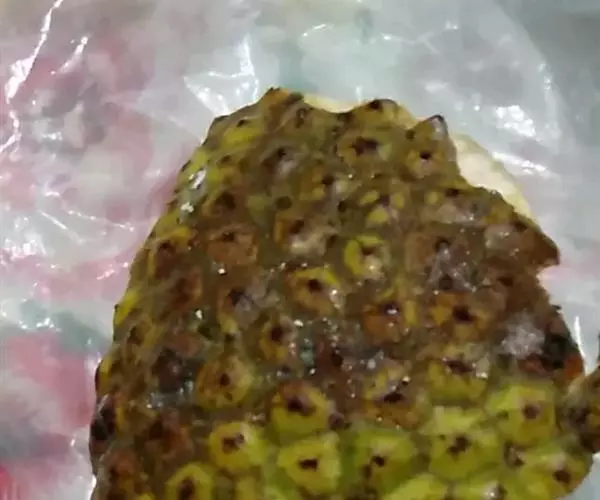 菠萝炒饭是将带皮菠萝纵切,用勺子将菠萝肉取出,切成小丁,…