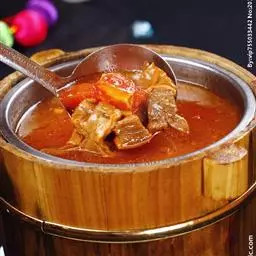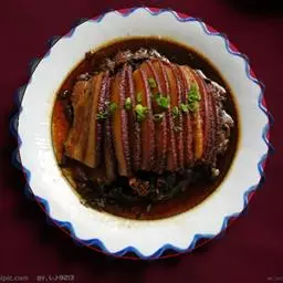 做把子肉,要选1斤左右的白条猪即可,不肥不瘦。一斤切八块,蒲草捆好。冒两遍,二遍血水清汤。放入坛子,不放盐全靠酱油调味,猛火开锅文火炖,炖好的把子肉肥而不腻、瘦而不柴,入口有醇厚的余香,掉在地上,就像豆腐一样摔的稀碎。 把子肉套餐