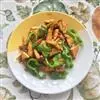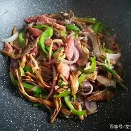 4.把腌制好的肉片放到油锅里用热油炸一炸,炸过的肉片吃起来肥而不腻。炸至3-5成熟即可。