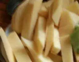 北豆腐(较有韧性)切大片,炸至表面金黄,发硬。