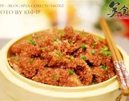 肉肥不腻,多滋多味。为徐州名吃。徐州把子肉是中华名小吃之一,是鲁菜中极具特色的小吃。徐州把子肉在制作上,采用15CM长的五花肉与排骨用蒲草捆在一起。所以称为:把子肉。饮食特点是:肥而不腻,多滋多味,肉色令人垂涎。把子肉是这种小吃的统称,还有其他的辅菜来搭配比如:四喜肉丸,兰花干,海带结,面筋,豆筋,豆皮,腐竹,腐衣,素鸡片,虎皮鸡蛋,黄花菜,小青菜,豆角,香肠,排骨,肘子,鸡腿等等荤素组合,可以满足顾客不同饮食需求,要一瓶啤酒,再配上一碗白米干饭浇上美味鲜香的肉汁,吃起来满嘴流油,回味悠长,口口留香。