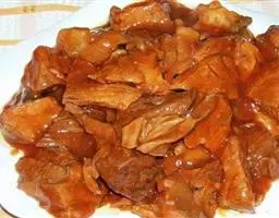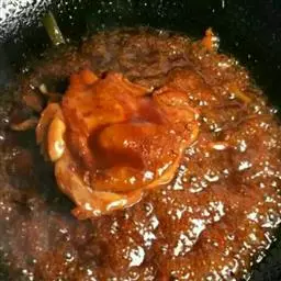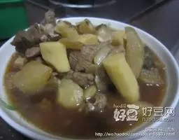 5.把炸好的肉片放到烧沸的卤汁里煮,煮熟为止。喜欢吃烂一点的朋友可增加时间。卤汁的佐料有姜片、大葱、花椒、八角、小茴香、香沙、桂皮、良姜等。卤汁的作法:将炒锅烧热,倒入食用油把油烧热放入切好的姜片、大葱、花椒、八角用热油炝一下然后将腌制肉片剩下的酱汁倒入锅里熬一下(如果剩下的酱汁不够用可继续添加老抽和白糖),沸腾后加入适量的水和香沙、桂皮、良姜等佐料将卤汁烧热后就可以放入炸好的肉片煮熟了。