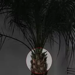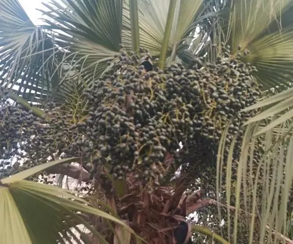 棕榈叶柄上有许多连续分布的小钝刺,叶片不仅小,并且叶片裂缝较为明显,因此不适合做扇子。自然状态下,棕榈叶片末端挺直坚硬;棕榈茎杆上的纤维浓厚而密,不易脱落。