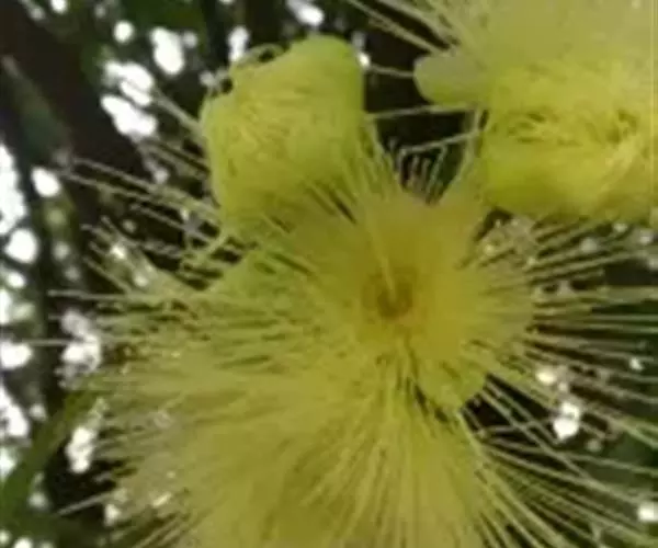 乔木状,高5-20米,直径20-30厘米,基部常膨大。叶阔肾状扇形,直径达1米余,掌状深裂至中部,裂片线状披针形,基部宽4-4.5厘米,顶部长渐尖,2深裂成长达50厘米的丝状下垂的小裂片,两面绿色;叶柄长;1-2米,下部两侧有黄绿色(新鲜时)或淡褐色(干后)下弯的短刺。