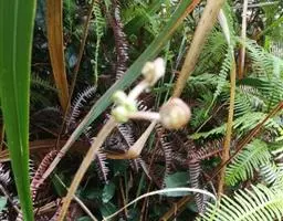 花序呈圆锥状,粗壮,长约1米,总梗上有6-7个佛焰苞,约6个分枝花序,长达35厘米,每分枝花序基部有1个佛焰苞,分枝花序具2次或3次分枝,小花枝长10-20厘米。花小,两性,长约2毫米;花萼裂至近基部成3个宽三角形近急尖的裂片,裂片有宽的干膜质的边缘;花冠约2倍长于花萼,裂至中部成3个半卵形急尖的裂片;雄蕊6枚,其基部合生成杯状并贴生于花冠基部,花丝稍粗,宽三角形,突变成短钻状的尖头,花药阔椭圆形;子房的心皮上面有深雕纹,花柱突变成钻状。