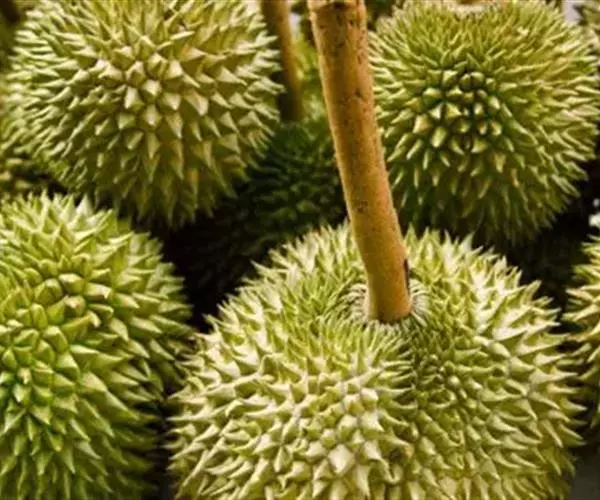 (3)长柄:因为此种榴梿的果柄比其他品种要长而得名,此品种柄长且圆,整颗榴梿也以圆形为主,果肉、果核也呈圆状,皮青绿色,刺多而密,果核大,果肉少但细腻而味浓。