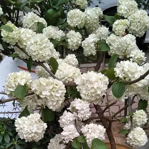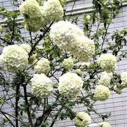 绣球荚蒾,五福花科荚蒾属落叶灌木,高可达3米,树冠球形;幼枝有垢屑状星状毛,老枝粗壮,具皮孔,…