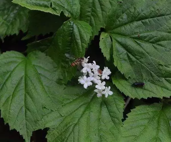 皱叶荚蒾是五福花科荚蒾属的小乔木植物。植株高达4米;叶柄及花序均被由黄白色、黄褐色或红褐色簇状毛组成的厚绒毛;小枝粗壮,稍有棱角;叶革质,卵状矩圆形至卵状披针形;聚伞花序稠密,总花梗粗,四角状,花冠呈现白色,雄蕊高出花冠;果实红色,后变黑色,宽椭圆形,无毛;花期为4-5月;果熟期为9-10月。皱叶荚蒾原产于中国,分布于陕西、湖北、四川及贵州等地。生长于山坡林下或灌丛中,海拔800-2400米。其性喜好阳光,耐半阴,喜温暖,有一定的耐寒性,喜湿润,不耐涝,耐中度盐碱,但在深厚肥沃、排水良好的中性或微酸性沙质土壤中生长更好,耐修剪,生长缓慢。其一般的繁殖方式为播种和扦插繁殖。皱叶荚蒾味苦,性凉。具有清热解毒、凉血止血的功效。可用于湿热痢疾、痈疽疮疖、咳血、吐血、便血、跌打损伤等疾病。皱叶荚蒾给人以郁郁葱葱的景象,全年观叶、春季观花