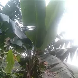 红蕉,假茎高1-2米。叶片长圆形,长1.8-2.2米,宽68-80厘米,叶面黄绿色,叶背淡黄绿色,…