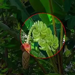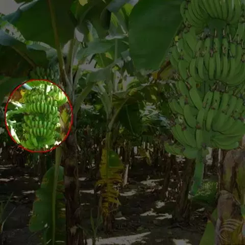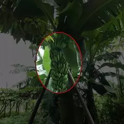 香蕉’),芭蕉科芭蕉属多年生草本植物,植株丛生,有匐匍茎;假茎浓绿有黑色斑点;叶片长圆形,…