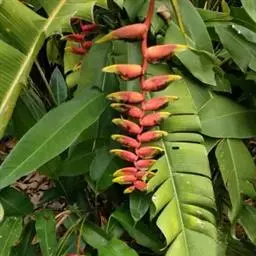 金嘴蝎尾蕉:芭蕉科,蝎尾蕉属多年生草本植物。株高可达6米。叶片长圆形,叶面绿色,叶背亮紫色;顶生花…