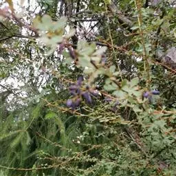 浆果球形或阔椭圆形,暗紫黑色,被白粉。种子红褐色,无假种皮。x=6。