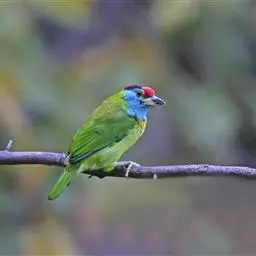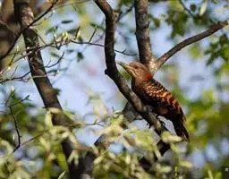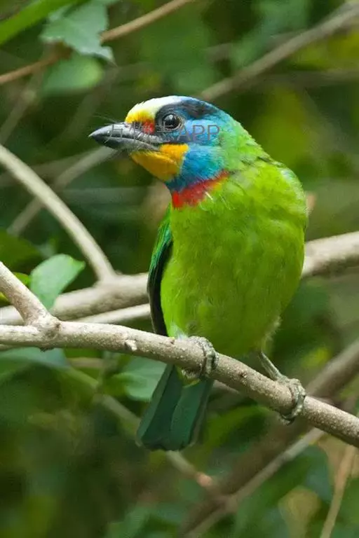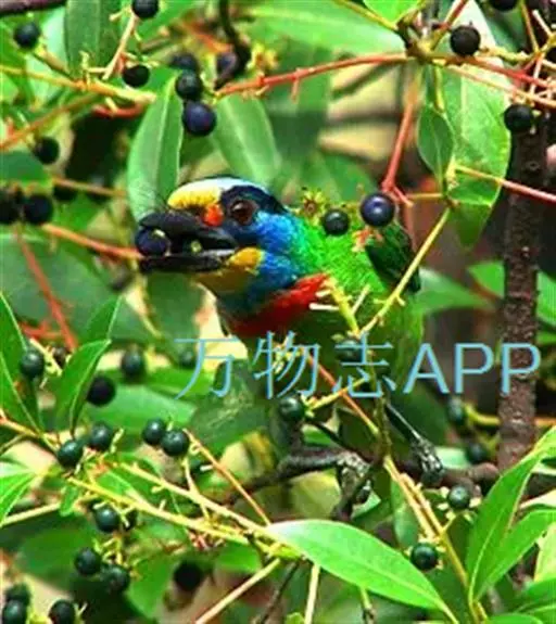 黑眉拟啄木鸟体色艳丽,善于鸣叫,以野果为食,有益植物的扩散。