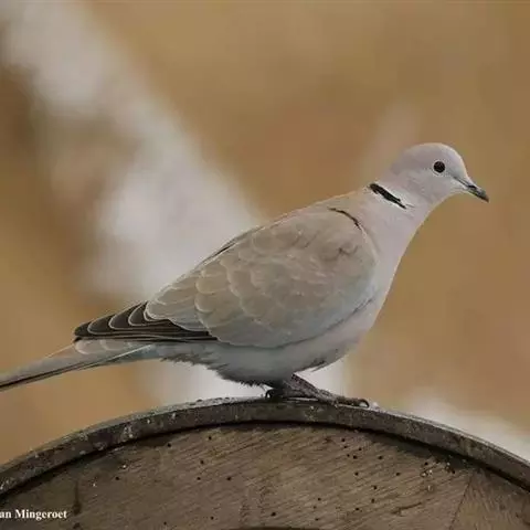 欧斑鸠体长27厘米,是一种体型略小的粉褐色斑鸠。颈侧具多黑白色细纹的斑块,翼覆羽深褐,…