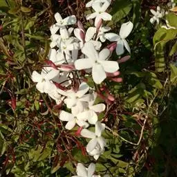 素馨花分株繁殖更为简单易行,适宜于一般家庭少量栽植。分株繁植时,选取母株周围串根萌蘖苗顺根撬出,剪去藤蔓10-50cm以上部分后用塑料薄膜扎紧封顶即成1株新苗,直接用来定植即可。如开春定植,当年冬季可现蕾,次年阳春可大量开花。
