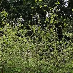 扦插时选取母株外围1-2a生青壮枝,在两个叶节中间平剪,剪成带有2-3个叶节为一段的插条(如果夏季扦插不宜选用太嫩的枝条),插条一般长8-12cm,除去花芽和下部1~2个叶节的叶片,如用蜡封或塑膜封严顶部剪口则效果更好;插条下部用5/10000萘乙酸或1/10000 ABT1号生根粉液中浸泡1h时后扦插入经多菌灵等杀菌剂消毒过的腐殖质较少的沙壤土小墒苗床中,扦插深度为所留叶片离土1cm左右.扦插后主要做好适度遮荫和控温、湿管理,如果用小拱棚塑膜覆育苗在高温时节要适时通风,防止烧苗。一般扦插30d后下部入土叶节处长出不定根,上部叶节处发出新芽,90d后可上袋假植或半年后挖苗出圃。