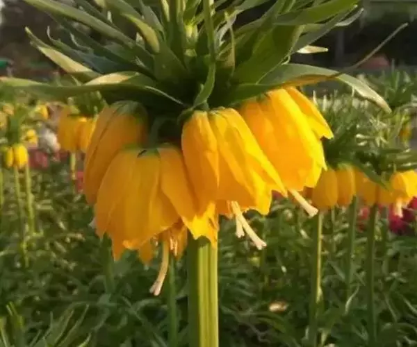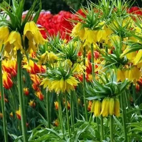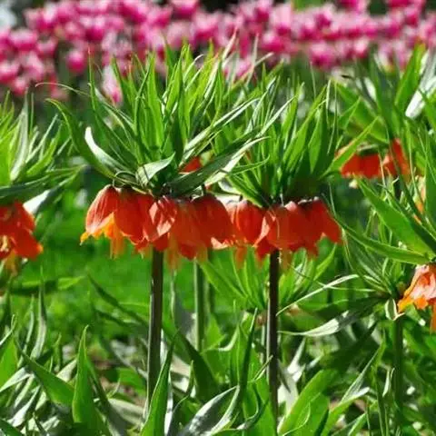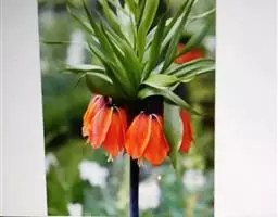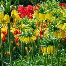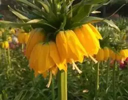 冠花贝母,学 名: Fritillaria imperialis,又名皇冠贝母,花生长在顶生总花梗上端或梗顶叶丛之下。分布在印度北部、阿富汗、苏丹及伊朗。