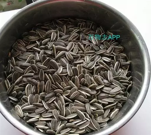 为菊科向日葵属植物向日葵Helianthus annuus L.的种子。全国各地均有栽培。