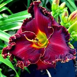 6、红色海盗萱草:抗病能力极强,对土壤要求很低,耐涝抗旱。高度25到30厘米,花期五月下旬至十月初,年分蘖率8个。