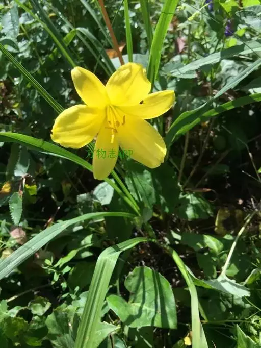 5、小黄花菜H.minor :高30~60cm。叶绿色,长约50cm,宽6cm。着花2~6朵,黄色,外有褐晕,长5~10cm,有香气。傍晚开花。花期6~9月,花蕾可食用。