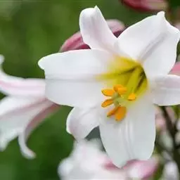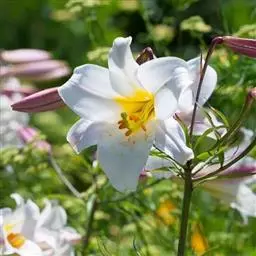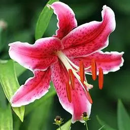 鳞茎人药中药称“百合”,性味甘、平,有润肺止咳,清心安神之功效。主治结核久咳,痰中带血,或热性病余热未退,虑烦惊悸,心神恍惚,神经衰弱,失眠等。