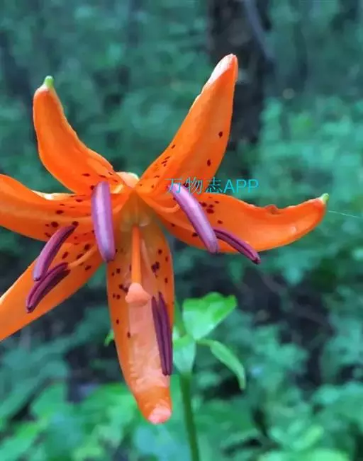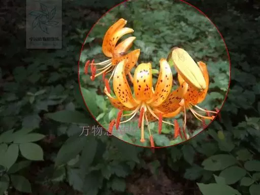 东北百合(Lilium distichum Nakai),别名卷莲花、老哇芋头、轮叶百合、伞蛋花、山丹花,为百合科、百合属多年生球根花卉。鳞茎卵圆形,白色,有节。苞片叶状,花淡橙红色,具紫红色斑点;花被片稍反卷,蒴果倒卵形,花期7-8月,果期9月,具有重要的观赏应用价值。中国东北有分布。
