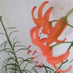 川百合:鳞茎为扁球形,白色。茎干绿色,上半部有小突起及稀疏的绵毛。叶片散生,为线状披针形, 边缘反…